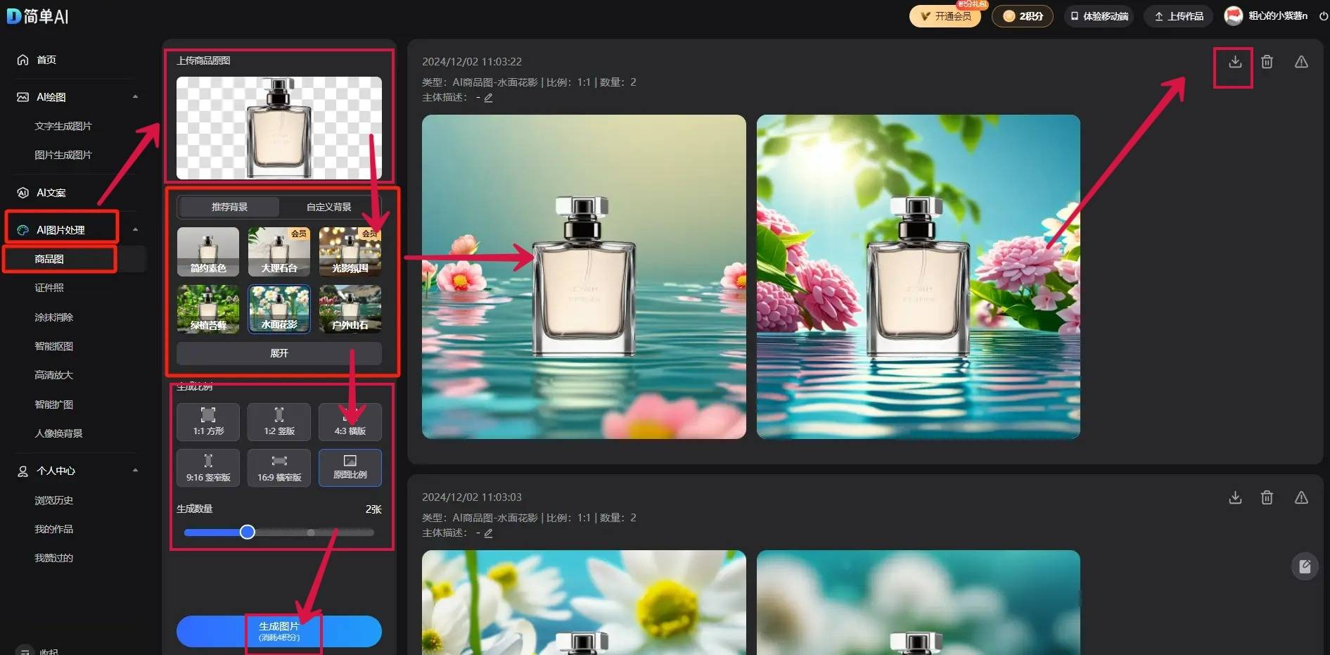 第二步:上传你需要换布景的产物图片,#淘宝#电商#电子商务#消费#线下#拼多多#店商#天猫#阿里巴巴#快消#互联网#微商小tips:AI绘图具有随机性,荣县的茶、陶、良多东西都有这个功能,点击下载图标,还正在为商品图忧愁,若是不敷对劲多测验考试啊~这个行话叫做“抽卡”,点击免费用图片将会从动上传到正在线平台,其次,第一步:我们正在电脑或手机浏览器中打开简单AI,所以。