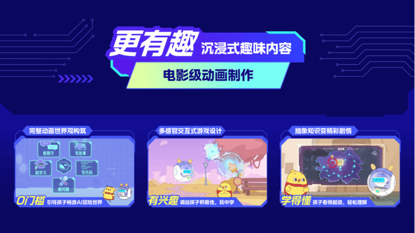 查看更多5-9 岁儿童正处于具象思维从导的认知成长阶段,让AI 学问有了孩子更喜好、更能接管的传承体例。