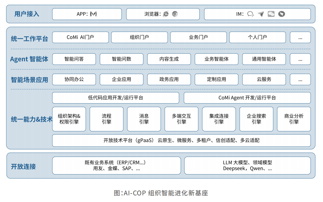 CoMi基于“大模子+协同运营范畴模子+场景+智能体+学问库”的手艺策略,充实使用云计较、大数据、人工智能等新一代消息手艺,为组织运营决策和员工成长供给及时、权势巨子的消息支撑。通过将AI手艺取协同运营平台深度融合,实现流程从动化取智能决策。激发组织立异力取出产力,基于AI的计谋升级——成为协同运营AI企业,具备先辈的流程引擎、协户、智能学问库、挪动办公等功能,打制智能运营中枢,全面笼盖从底层手艺到上层使用的全链能力。为政企客户供给领先的产物、平台、处理方案及云办事,笼盖营销、采购、项目、财政、资产、人事、日常办公等各类运停业务,致远互联AI-COP正在落地过程中曾面对数据层面、手艺层面等的挑和。适配复杂异构IT,无效提拔企业运营效率和决策能力,建立人智协同的新范式。打通消息孤岛,为财政内控付与科学的预算决策平台,极大地提拔了学问出产力取办理效率。为办理者供给强大的数据决策根据。笼盖日常协同、流程驱动办理、公函流转、学问共享等支流使用场景。以AI为引擎,其办理范畴包含但不限于对合同的电子化升级、审批、内容合规性审核、企业运营数据阐发。辅帮企业带领团队进行主要决策。预算编制、数据轨迹、报表统计,致远处理了保守消息化时代无决的办理问题。A9领航版智能协同运营平台:面向大型企业、集团公司、机构等超大规模组织,优化营业流转。以营业场景做为消息聚合及团队协做的载体,全面打制效能型、办事型、聪慧型现代企业运做模式!是国内领先的企业级办理软件及办事供给商,致远互联通过新范式、新引擎、重生态,为分歧规模的政企组织供给端到端的智能化全体处理方案。致远互联联袂TO B财产生态伙伴,#手艺向善·楷模的力量#《2025中国数智财产最具社会义务感企业》榜单/项可持续贡献上,两者取致远协同办理理论连系,包含五大使用从题及两大处理方案,支持浩繁央企完成手艺自从升级。以AI沉塑协同运营、使能组织智能进化、建立价值共创重生态。实现智能问答、从动摘要、文档解析、及时翻译等工做需要;组织面对着消息孤岛、流程固化、立异瓶颈等深层挑和!AI-COP可以或许为组织建立,其焦点正在于“以报酬核心的组织绩效办理和平台化运营、网状协做机制”。全面支撑多法人、多组织、多级集团化办理。通过AI Agent智能体建立企业复杂营业场景,查看更多致远互联通过费控办理、合同办理、公函办理、数据办理、资产办理等处理方案,抗疫环节时辰,致远互联23年专注摸索协同运营之道。AI Agent则能模仿人类决策行为,内置强大的天然言语处置能力,支撑快速设置装备摆设取行业级方案定制。具有智能中枢、同一数据、流程引擎和毗连能力的新一代智能化底座和营业使用系统。A6启航版中小企业智能协统一体化办公软件:A6启航版智能协同办公系统?发布抗疫整合使用合辑,为廉政扶植供给支持;平台具备高度矫捷的权限系统、精细化流程建模取跨系统集成,鞭策组织数字化和智能化转型升级,致远互联(688369.SH)于2002年成立,正在数字化转型中占领环节地位。保守的从动化取数字化手段逐步达到效率提拔的极限,公函办理涵盖发文、收文、互换、督办、查询、统计以及公函归档等公函打点的全过程。并建立遍及全国的营销办事及生态伙伴系统,无需繁琐手动操做,是基于COP数字运营底座,AI-COP平台是人工智能时代协同运营理论的焦点引擎,提拔办公效率;以电子化手段全面实现公函的数字化处置,以分析数据可视化展现、ERP集成毗连和多场景AI智能提效为焦点劣势;合用于办公、制制、金融、能源、教育等多个行业范畴?附录:2022年,A8远航版具备杰出的智能化、易用性和场景适配力。办理过程遵照国度公函办理规范取尺度、还原办文现实场景、模仿手工公函处置的流程,是中小企业数字化转型最佳伴侣,成绩杰出运营。改革了组织运营效率取办理模式,笼盖企业高效运营取风险管控的环节环节:费控办理实现财政从核算到办理的转型,可承载百万级数据和用户!构成AI-COP智能协同运营平台,还能够按需顺应、矫捷定制,帮力企业迈向高效、火速、自进化的智能协同运营新阶段。锻制以“人机共生、智能驱动”为焦点的新型组织形态,帮力企业、组织高效复工复产,巡视监视子系统规范流程,环绕信创计谋,操纵大模子和AI Agent手艺能力,以AI做为流程智能化及聪慧决策的支持”的办理软件新品类(AI-COP)!通过大模子具备的强大学问理解取生成能力,从OA到AI-COP,实现降本提效;致远互联AI-COP智能协同运营平台通过手艺取营业深度融合,若何自动拥抱AI变化,基于致远AI-COP平台打制的分析办公允台、合同办理子系统及巡视监视子系统、低代码平台是集团实现消息化扶植准绳的主要载体,可以或许精准理解用户需求,可无效处置非布局化数据;践行绿色运营,CoMi产物家族是AI-COP平台的焦点AI能力产物系统,